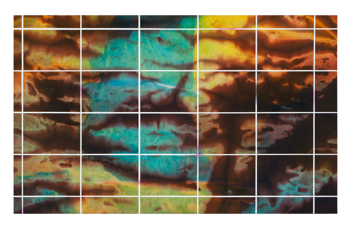 Ellsworth, 2011, acrylic and bleach on dyed canvas, 72″ x 84″ photo by Eric Hester